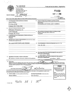 Actually, Music Millennium only owns the mark inside Oregon and in connection with “stickers, buttons and t-shirts.” Music Millennium’s Oregon trademark application (below) was filed in September 2006 and claims a date of first use of October 2002.