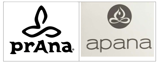 The Defendants are accused of selling yoga apparel under the confusingly similar name “apana,” coupled with a logo that Plaintiff feels is confusingly similar to prAna’s distinctive logo design.